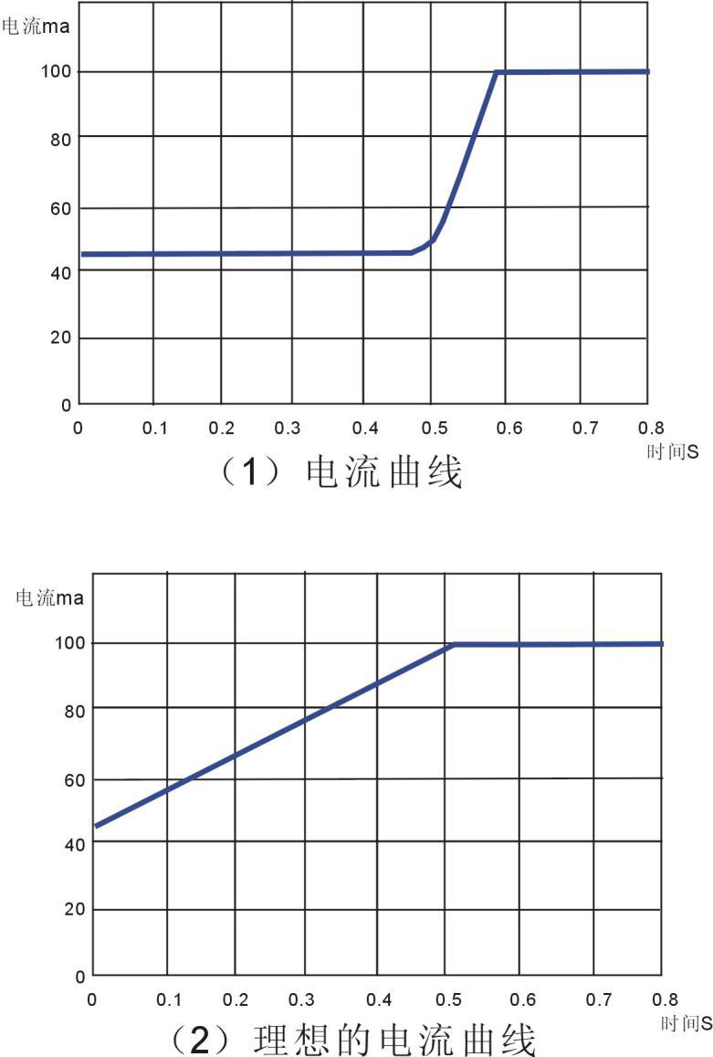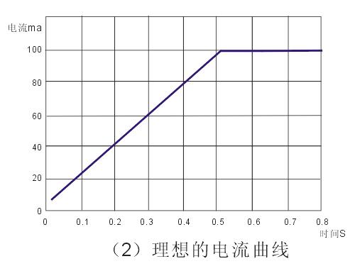圖(1)中的電流曲線并不是最理想的工作狀態(tài),最理想的工作狀態(tài)應(yīng)該像圖(2)所示,啟動時,電流隨著時間呈斜線上升到正常值,LED的亮度是從暗到亮慢慢上升,這樣,會得到最佳的緩沖效果。