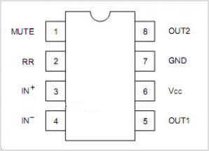 5腳VO1:放大器1輸出端,其直流電平等于(1/2Vcc-0.7/2)V。