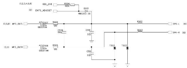 耳機(jī)spk電路,mp3_OUTL共用為音頻功放輸入