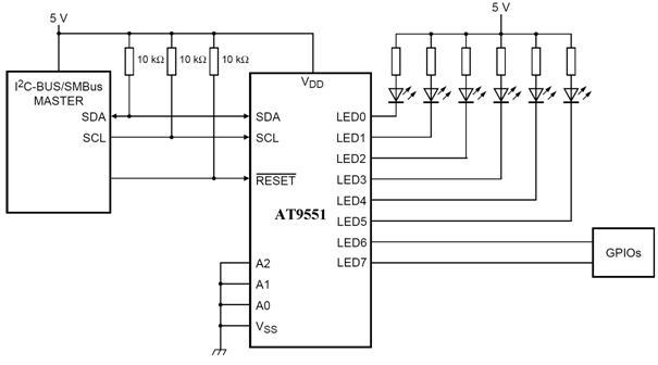 PCA9551/AT9551 8通道I2C接口LED驅(qū)動器IC電路特點及應(yīng)用原理圖介紹