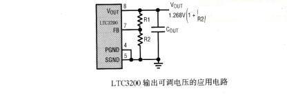 LTC3200輸出可調(diào)電壓的應(yīng)用電路與固定5V輸出電路的不同之處僅僅是需外接兩個(gè)電阻R1、R2,如圖所示。