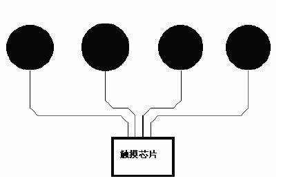 (2):布局時(shí)應(yīng)盡量保證觸摸IC到感應(yīng)盤的距離基本平衡。合理的布局如圖(3)所示,不合理的布局如圖(4)所示。
