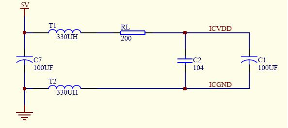 如果用戶直接使用主機(jī)的5V電源,需要在觸摸IC電源前加如圖(2)所示的濾波電路。