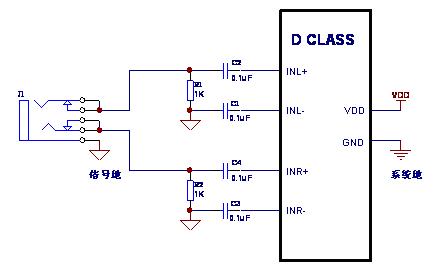地環(huán)路產(chǎn)生的噪聲,比如電源與音源同為PC機提供,PC機上較大噪聲會引入,此時采用差分輸入切斷地環(huán)路會有很大效果;