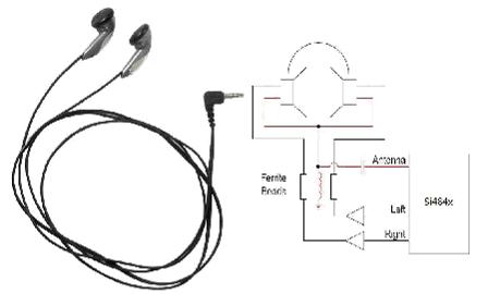 Si484x FM接收機支持耳機天線。長度為1.1~1.45米的耳機天線可以應(yīng)用在FM接收機中,因為這個長度接近FM波長的一半(FM波長大約是3米)。