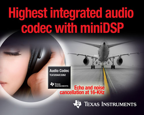 ·第三代 miniDSP 技術(shù)可在高達 16 kHz 的頻率下抵消寬帶噪聲及回聲,為視頻會議等應(yīng)用中的電路交換或 VoIP 電話帶來高清語音質(zhì)量;