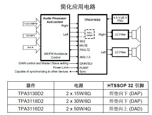 | TPA3116D2/TPA3118D2/TPA3130D2 帶有AM干擾防止功能的15W、30W、50W雙聲道D類功放IC性能特點及應(yīng)用說明 |