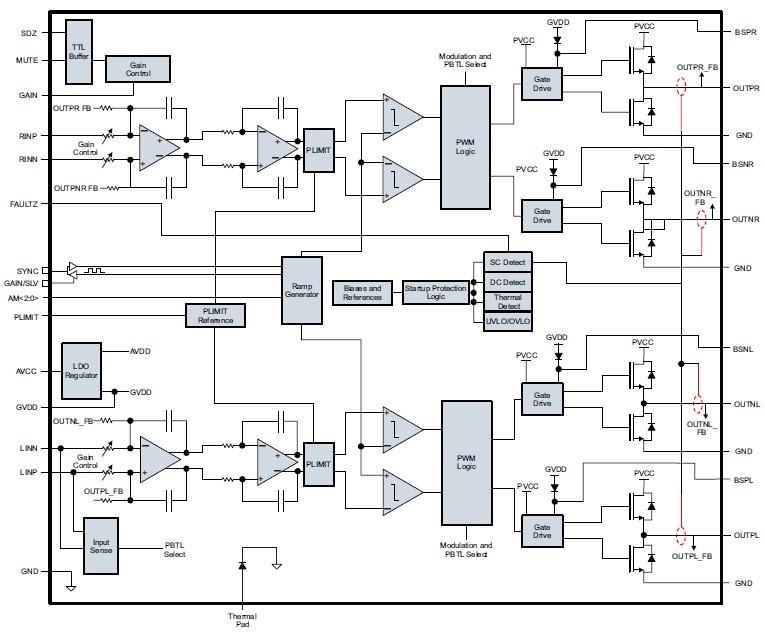 TPA3116D2/TPA3118D2/TPA3130D2系列方框圖