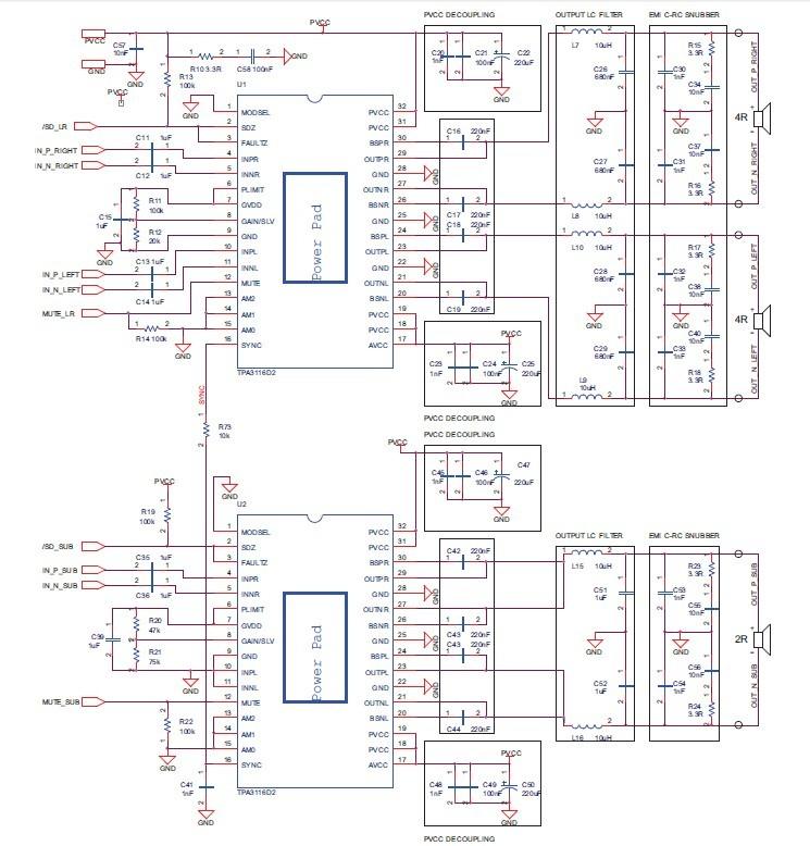 TPA3116D2/TPA3118D2/TPA3130D2應(yīng)用電路圖