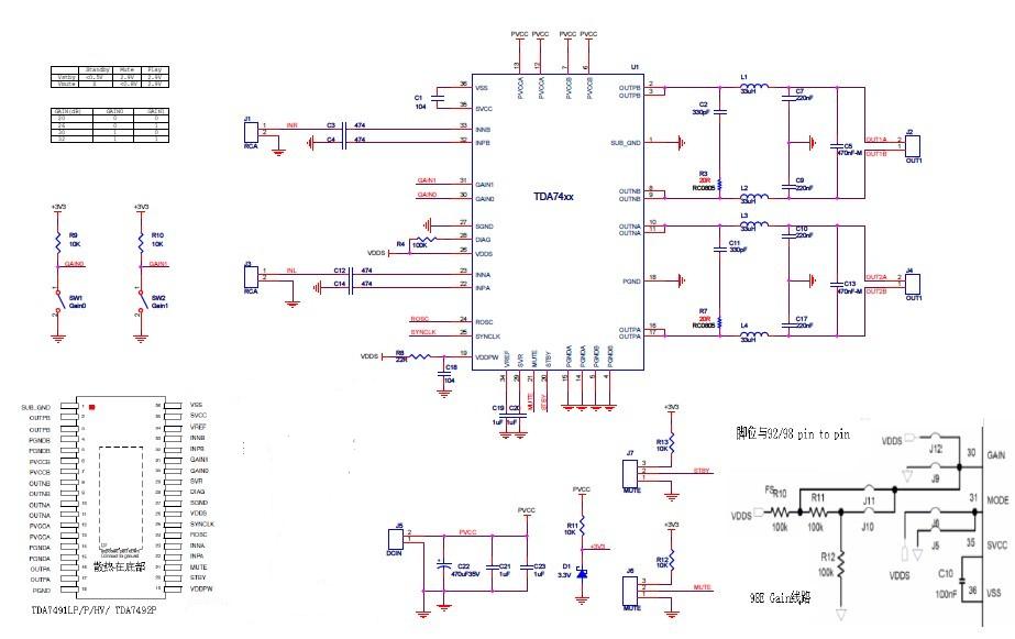 TDA7491LP/TDA7491P/TDA7491HV/TDA7492P 6W-25W雙聲道D類音頻功放IC應(yīng)用電路原理圖說明