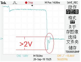 2、由于“死區(qū)”時間的存在,死區(qū)釋放后,功率管體二極管反向恢復引起尖峰能量