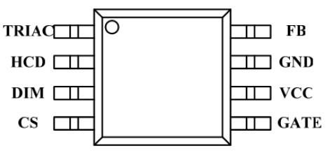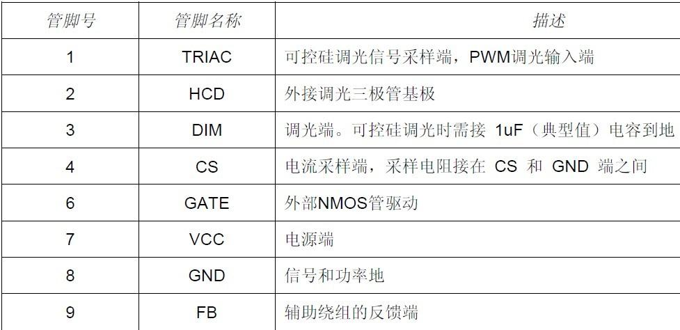 HC3108是一款支持可控硅調(diào)光器的LED恒流控制芯片。適用于輸入全電壓范圍的反激式隔離LED恒流電源。HC3108工作在電感電流斷續(xù)模式,采用原邊反饋模式,無需次級(jí)反饋電路,也無需補(bǔ)償電路即可實(shí)現(xiàn)恒流,極大的節(jié)約系統(tǒng)成本和體積。芯片采用了專利的恒流控制方式,可以達(dá)到優(yōu)異的線性調(diào)整率和負(fù)載調(diào)整率。HC3108芯片內(nèi)部集成了可控硅調(diào)光控制電路,外圍僅需要很少的組件就可與芯片配合實(shí)現(xiàn)調(diào)光功能。調(diào)光范圍寬,無閃爍。HC3108芯片內(nèi)帶有高精度的電流取樣電路,使得LED輸出電流精度達(dá)到±3%以內(nèi)。HC3108具有多重保護(hù)功能,包括LED開路保護(hù)LED短路保護(hù)、芯片過溫保護(hù),過壓保護(hù),欠壓保護(hù), FB短路保護(hù)等。HC3108采用SOP-8封裝。
