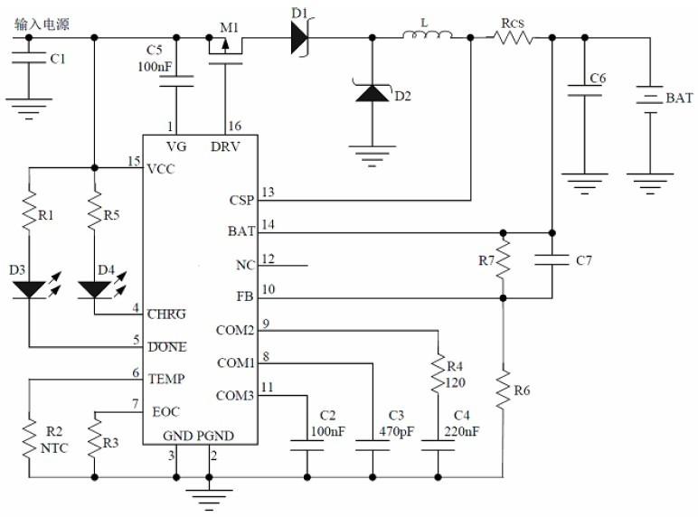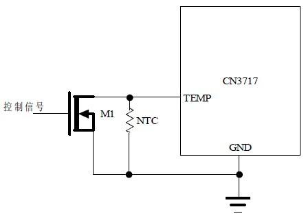 當(dāng)控制信號(hào)為高電平時(shí),M1導(dǎo)通,TEMP管腳為低電平,禁止充電;