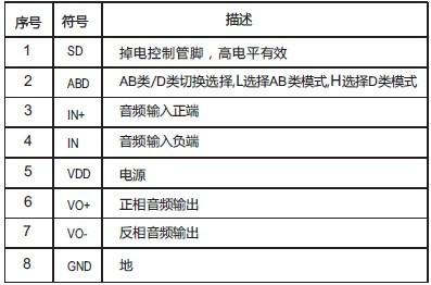 設(shè)置芯片處于AB和D類的工作模式。其邏輯狀態(tài) 如下表: