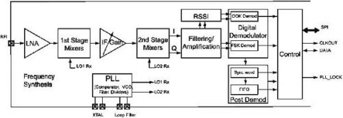 SX1210/13是Semtech的集成UHF頻段接收器。SX1210用于868MHz、915MHz頻段,而SX1213用于433MHz頻段,其它各參數(shù)完全相同且管腳兼容。SX120/13的接收電流不到3mA,為業(yè)界最低,與競(jìng)爭(zhēng)對(duì)手相比,接收電流要低6倍。設(shè)計(jì)應(yīng)用于無線報(bào)警器、安全,家庭自動(dòng)化中的傳感器網(wǎng)絡(luò),以及自動(dòng)化抄表領(lǐng)域。