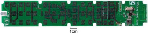 當(dāng)遙控器的應(yīng)用要求多于15個(gè)按鍵或RF協(xié)議、數(shù)據(jù)包比較復(fù)雜時(shí),可以使用SX1230的單片機(jī)模式實(shí)現(xiàn)。下圖顯示了一個(gè)電路板尺寸是4x22cm的42鍵遙控器樣機(jī)照片,這個(gè)遙控器同時(shí)兼容紅外方式。