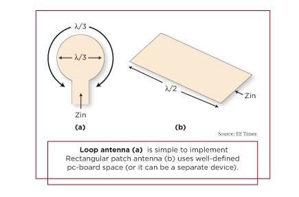 圖1:環(huán)形天線(a)易于實(shí)現(xiàn)。矩形塊天線(b)使用規(guī)劃得很好的PCB空間(它也可是一個(gè)分立器件)