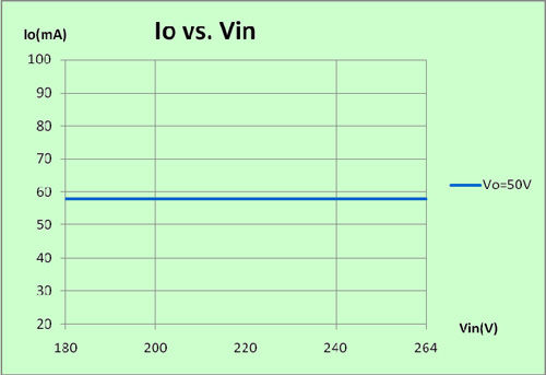 對(duì)于輸入電壓、負(fù)載LED變化情況下,我們測(cè)試得到如下交叉調(diào)整率結(jié)果: