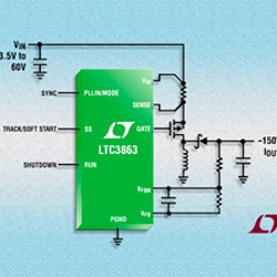 LTC3863 在 3.5V 至 60V 的輸入電源電壓范圍內(nèi)工作,用來(lái)抵御高壓瞬態(tài)影響,以在汽車(chē)?yán)滠?chē)發(fā)動(dòng)時(shí)連續(xù)工作,并涵蓋范圍很寬的輸入電源和電池化學(xué)組成。這款器件在輸出處于突發(fā)模式 (Burst Mode®) 運(yùn)行時(shí),備用模式的靜態(tài)電流為很低的 70µA,因此有助于延長(zhǎng)電池供電型應(yīng)用的運(yùn)行時(shí)間。在電流的典型值為 3A 的情況下,該器件的輸出電壓可以在 -0.4V 至 -150V 或更低的范圍內(nèi)設(shè)定,從而非常適用于 12V 至 24V 汽車(chē)、重型設(shè)備、工業(yè)控制、機(jī)器人以及電信應(yīng)用。