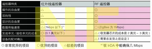 但是,要想取代已經(jīng)使用30年的紅外線遙控器,RF遙控器在功耗及延遲時(shí)間等性能和成本方面還存在著嚴(yán)峻挑戰(zhàn)(見圖2)。在這幾方面,現(xiàn)有無線技術(shù)中大部分都不能完全滿足要求,在功能或性能上還存在不足。因此,大部分的無線通信技術(shù)都必須重新制定標(biāo)準(zhǔn)。