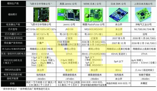 除索尼公司以外,其它家電廠商對(duì)于IEEE 802.15.4標(biāo)準(zhǔn)也非常關(guān)注。在這樣的背景下,一直在推動(dòng)ZigBee標(biāo)準(zhǔn)的芯片及模塊供應(yīng)商,也都把采用ZigBee標(biāo)準(zhǔn)或IEEE 802.15.4標(biāo)準(zhǔn)的無線收發(fā)器轉(zhuǎn)向RF遙控器市場(見表3)。尤其是飛思卡爾半導(dǎo)體公司在2006年中期又開發(fā)出RF遙控器的參考電路板,表示出進(jìn)入新市場的積極態(tài)度。