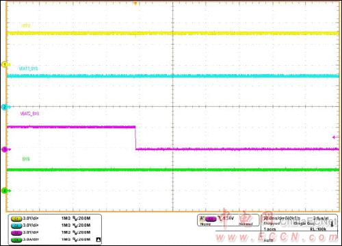 圖8 靜態(tài)負(fù)載備電拔出( VBAT1_SYS>VBAT2_SYS)