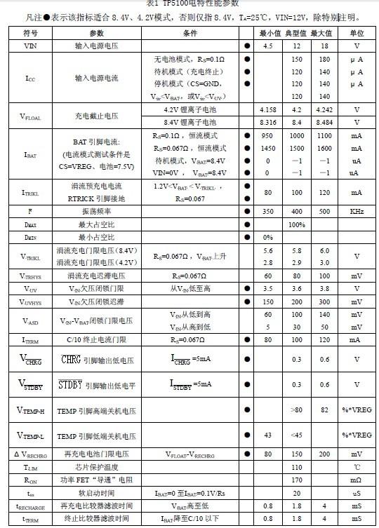 TP5100是一款開關(guān)降壓型雙節(jié)8.4V/單節(jié)4.2V鋰電池充電管理芯片。其QFN16超小型封裝與簡單的外圍電路,使得TP5100非常適用于便攜式設(shè)備的大電流充電管理應(yīng)用。同時(shí),TP5100內(nèi)置輸入過流、欠壓保護(hù)、芯片過溫保護(hù)、短路保護(hù)、電池溫度監(jiān)控、電池反接保護(hù)。TP5100具有5V-18V寬輸入電壓,對(duì)電池充電分為涓流預(yù)充、恒流、恒壓三個(gè)階段,涓流預(yù)充電電流、恒流充電電流都通過外部電阻調(diào)整,最大充電電流達(dá)2A。TP5100采用頻率400kHz的開關(guān)工作模式使它可以使用較小的外圍器件,并在大電流充電中仍保持較小的發(fā)熱量。TP5100內(nèi)置功率PMOSFET、防倒灌電路,所以無需防倒灌肖特基二極管等外圍保護(hù)。