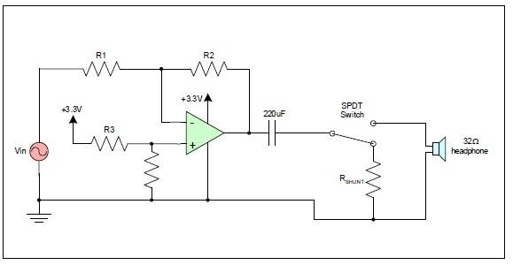 圖2顯示了驅(qū)動(dòng)一個(gè)32Ω耳機(jī)的單電源音頻放大器的簡(jiǎn)化布局,它廣泛用于許多便攜式媒體播放器。音頻放大器輸出信號(hào)被DC偏置為系統(tǒng)電源電壓的一半,從而允許完整的音頻信號(hào)在正負(fù)方向擺動(dòng)。220μF隔直流(DC blocking)電容可消除耳機(jī)負(fù)載的DC偏置。220μF電容和32Ω負(fù)載阻抗構(gòu)成了一個(gè)有22Hz轉(zhuǎn)角頻率的高通濾波器(HPF),可覆蓋整個(gè)音頻帶寬。