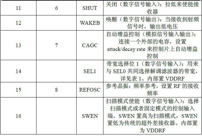 XC4366是一個(gè) ASK/OOK(開(kāi)關(guān)鍵控)的單晶片射頻接收集成電路設(shè)備。它是一個(gè)真正的“從天線接收到數(shù)據(jù)輸出”的單片電路。所有的射頻和中頻的調(diào)諧都在集成電路里完成,這樣可以無(wú)須手動(dòng)調(diào)整并且降低成本。實(shí)現(xiàn)了一個(gè)高度可靠且低成本的解決方案。XC4366是一個(gè)采用 16 引腳封裝且功能齊全的芯片,XC4366A/B/C/DL 采用了 8 引腳封裝,功能稍有減少。XC4366 提供了兩種附加的功能,(1)一個(gè)關(guān)閉引腳,在任務(wù)周期操作時(shí)可以用來(lái)關(guān)閉設(shè)備;(2)一個(gè)喚醒輸出引腳,當(dāng)接收到射頻信號(hào)時(shí),它可以提供一個(gè)輸出標(biāo)記。這些特點(diǎn)使得 XC4366 可以用在低功耗的應(yīng)用上,比如 RKE 和遠(yuǎn)程控制。
