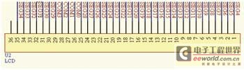 本設(shè)計采用的ST20P18單片機,其內(nèi)核中自帶控制/驅(qū)動液晶模塊,該LCD(圖3)顯示模塊是8×40點陣,常用于遙控設(shè)備的液晶顯示。液晶顯示的主要控制引腳為COM0~COM7。本設(shè)計只用到COM0~COM3。