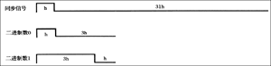 對應(yīng)于每一種狀態(tài),編碼芯片內(nèi)部能夠生成一種特殊的編碼,這種編碼也是由“1”和“0”組成,但并不是簡單的用高電平代表“1”,用低電平代表 “0”,而是用高電平與低電平寬度比例的不同來區(qū)分“1”和“0”,也就是所謂的占空比。為了提高此編碼傳輸串行信號的可靠性,故此編碼采用一個周期的占空比為1/4的脈沖表示0,占空比為3/4的脈沖表示1,同步信號用一個占空比為1/32的脈沖表示,如圖5所示。
