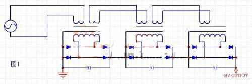 高壓電源最主要的技術(shù)特點,就是在于輸出電壓很高。高的輸出電壓對很多方面提出了特別的要求——元器件耐壓的要求、結(jié)構(gòu)設(shè)計的要求、絕緣材料的要求等。與此同時,電路結(jié)構(gòu)上也有異于通常的結(jié)構(gòu)。通常對于輸出10KV以下的電源,可以直接采用傳統(tǒng)的各種拓?fù)浣Y(jié)構(gòu)。但是對于電壓更高的電源,就要對電路結(jié)構(gòu)作一些修改,以滿足更高電壓的輸出。由于變壓器初級部分的功率器件的耐壓限制,一般驅(qū)動部分依然是傳統(tǒng)的開關(guān)電源拓?fù),對電路結(jié)構(gòu)的修改,主要是集中在變壓器以及后面的整流電路上。下面主要對這兩部分進(jìn)行討論。