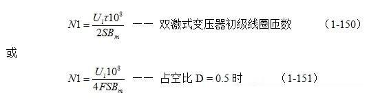 半橋式變壓器開(kāi)關(guān)電源與推挽式開(kāi)關(guān)電源一樣,也屬于雙激式開(kāi)關(guān)電源,因此用于半橋式開(kāi)關(guān)電源的變壓器鐵心的磁感應(yīng)強(qiáng)度B,可從負(fù)的最大值-Bm,變化到正的最大值+Bm,并且變壓器鐵心可以不用留氣隙。半橋式開(kāi)關(guān)電源變壓器的計(jì)算方法與前面推挽式開(kāi)關(guān)電源變壓器的計(jì)算方法基本相同,只是直接加到變壓器初級(jí)線圈兩端的電壓僅等于輸入電壓Ui的二分之一。根據(jù)推挽式開(kāi)關(guān)電源變壓器初級(jí)線圈匝數(shù)計(jì)算公式(1-150)和(1-151)式: