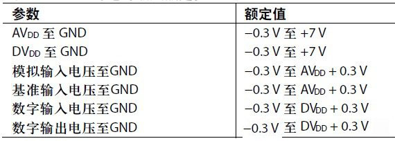 ADI公司的所有數據手冊都含有"絕對最大額定值"(AMR)部分,它說明為避免造成破壞,對引腳或器件可以施加的最大電壓、電流或溫度。