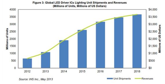 今年照明將超過手機,成為最大的LED驅(qū)動IC領域,到2018年營業(yè)收入預計將達8.1億美元。