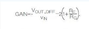 圖中的外接電阻R F和R G設(shè)定單端-差分放大器的增益,即