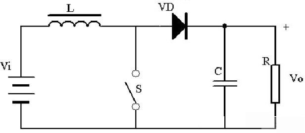 升壓變換器原理圖如圖2所示,當(dāng)開關(guān)閉合時(shí),輸入電壓加在電感上,此時(shí)電感由電壓(Vi)勵(lì)磁,電感增加的磁通為:(Vi)*Ton。