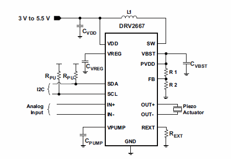 TI宣布面向高清消費(fèi)類、汽車及工業(yè)觸摸屏應(yīng)用推出業(yè)界最高集成度壓電式觸覺驅(qū)動(dòng)器。該 DRV2667 具有數(shù)字接口、集成型 15 至 105V 升壓轉(zhuǎn)換器、功率二極管以及 40 至 200V 峰至峰 (Vpp) 全差動(dòng)放大器,可實(shí)現(xiàn)不足同類競(jìng)爭解決方案尺寸一半的完整單芯片解決方案尺寸。此外,DRV2667 還具有 I2C 控制的數(shù)字回放引擎,其可接替主機(jī)處理器的觸覺效果生成工作.