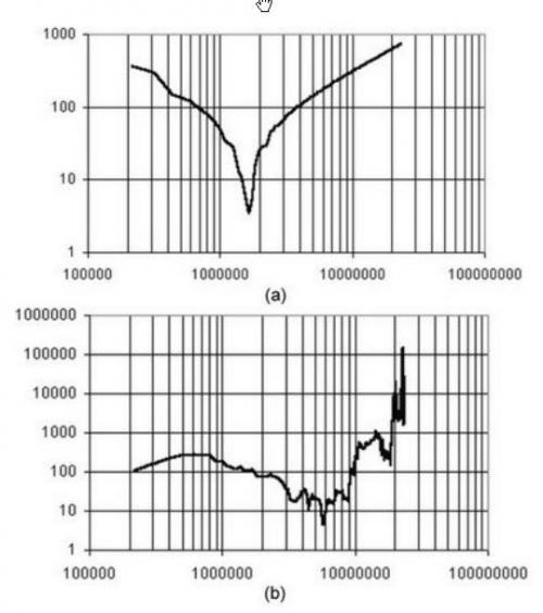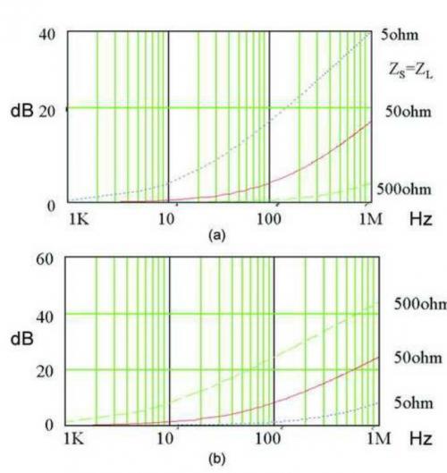 圖4 a)100uh電感的衰減 b)100nF電容器的衰減