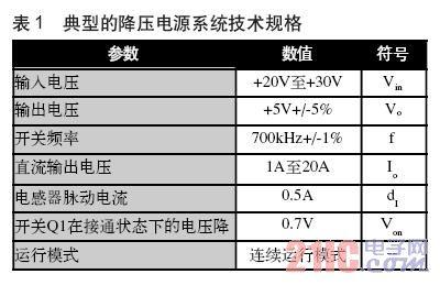 為了算出適用于開關(guān)電源整個運行條件的最小電感值,對參數(shù)值的選擇必須能夠保證在各項參數(shù)處于最不利組合的條件下,所選擇的這一電感值仍能將紋波電流保持在特定的數(shù)值范圍內(nèi)。而針對降壓型開關(guān)電源,其最不利組合條件為:輸入電壓和頻率均處于各自的最低數(shù)值時。此外,還要將輸出電壓也取為其最小規(guī)定值,以確定能夠保持正常調(diào)節(jié)功能所需的最低電感值。設(shè)計者可以按照自己所習(xí)慣的方式,對這些數(shù)值進行控制,以達到最差條件成立的狀態(tài)。