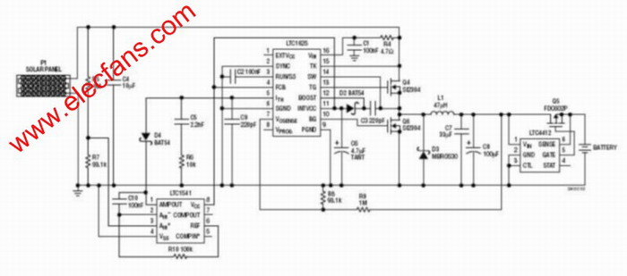不過,有兩個(gè)問題依然存在,即:“至滿充電電池的浮動(dòng)電壓控制”和“在最佳發(fā)電點(diǎn)給電池板加載”。這些問題常常可以通過采用一個(gè)開關(guān)模式充電器和一個(gè)高效率降壓型穩(wěn)壓器來加以解決。
