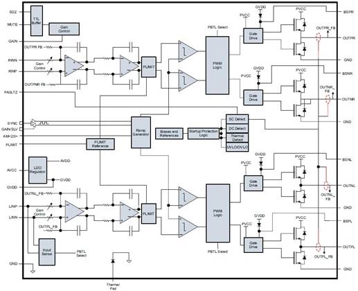 圖1. TPA3132D2內(nèi)部方框圖