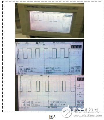 如圖4所示,這是其中一路PWM波的控制信號,通過手機端控制其占空比,用示波器測出其波形。