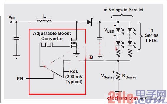 圖2:集成電流阱的LED驅(qū)動器