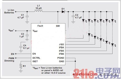 與筆記本電腦或者上網(wǎng)本一樣,平板電腦背光驅(qū)動器應(yīng)用同樣基于DC/DC轉(zhuǎn)換器和接地電阻通路,以用于LED。這種應(yīng)用一般具有如下一些要求: