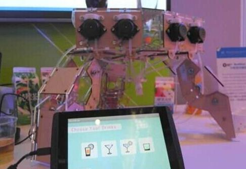 英特爾以Quark處理器推出的Galileo開發(fā)板,以推動各界開發(fā)低功耗的裝置,現(xiàn)場展示一臺自動調(diào)酒機(jī)器,機(jī)器連結(jié)了果汁、汽水等多種飲科,使用者只要在前方平板電腦上選擇想要的飲料后,機(jī)器就會自動制作調(diào)配。