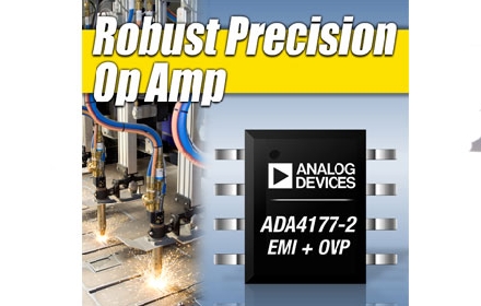 ADI最近推出業(yè)界首款性能最穩(wěn)定的運算放大器ADA4177-2,可針對偏離供電軌32 V的信號提供輸入保護以及為1 GHz以上的電磁干擾(EMI)提供70 dB抑制能力。雙通道、精密、低噪聲、低輸入運算放大器ADA4177-2能滿足系統(tǒng)設(shè)計人員對于傳感器接口放大器的設(shè)計應(yīng)用要求,不僅精度、線性度特性,還有針對任務(wù)關(guān)鍵型過程控制、防務(wù)、航空航天、電機控制應(yīng)用和多通道數(shù)據(jù)采集儀器儀表的抗環(huán)境干擾性能。