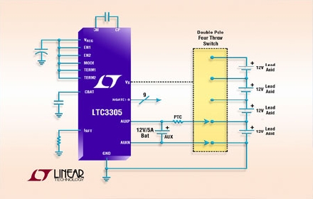 Linear推出單片、獨立多節(jié)電池平衡器 LTC3305,該器件適用于 12V 鉛酸電池。平衡是通過以下方式實現(xiàn)的:從電壓較高的電池吸取電荷,并將這些電荷傳送到電壓較低的電池,以使電池充電至相同電量。這些電荷是用一個容量較低的電池傳送的,該電池依次連接電池組上的電池。這個電池不僅傳送電荷,該電池中的能量也加到電池組的總能量中,從而增加了容量。該芯片還包括排序、面向外部高壓 NFET 的驅(qū)動電路、電壓監(jiān)視和保護功能。LTC3305 為獨立工作而設(shè)計,不需要微處理器或其他控制電路。有了 LTC3305,就可以更換電池組的電池,而且新更換的電池還能與電池組的其他原有電池快速平衡。LTC3305 非常適合電信備份系統(tǒng)、家用電池供電備份系統(tǒng)、電動汽車和工業(yè)照明系統(tǒng)等應(yīng)用。