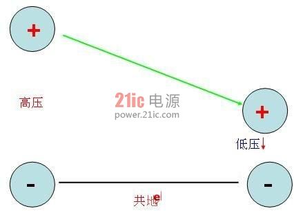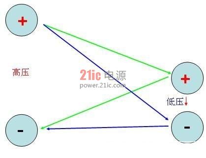 上圖是不共地情況下,左邊高壓的正負端集聚正負電荷,根據(jù)電子學基礎(chǔ)理論庫倫定律,