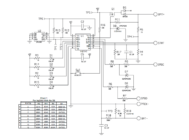 BQ2040是TI公司生產(chǎn)的電池電量檢測(cè)芯片,它可以將檢測(cè)的信號(hào)通過(guò)I2C總線微處理器交換數(shù)據(jù),然后將電量信號(hào)傳輸?shù)斤@示電路中,最終通過(guò)LED顯示電池電量。BQ2040支持鎳鎘、鎳氫鋰離子電池,也支持SBS1.0協(xié)議但只可以驅(qū)動(dòng)4個(gè)LED。